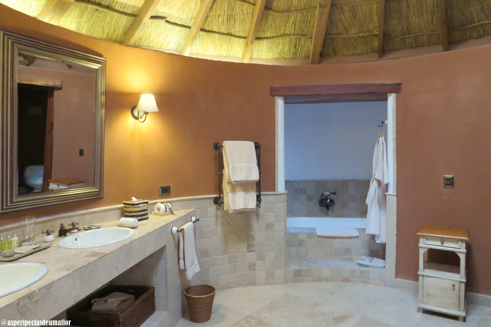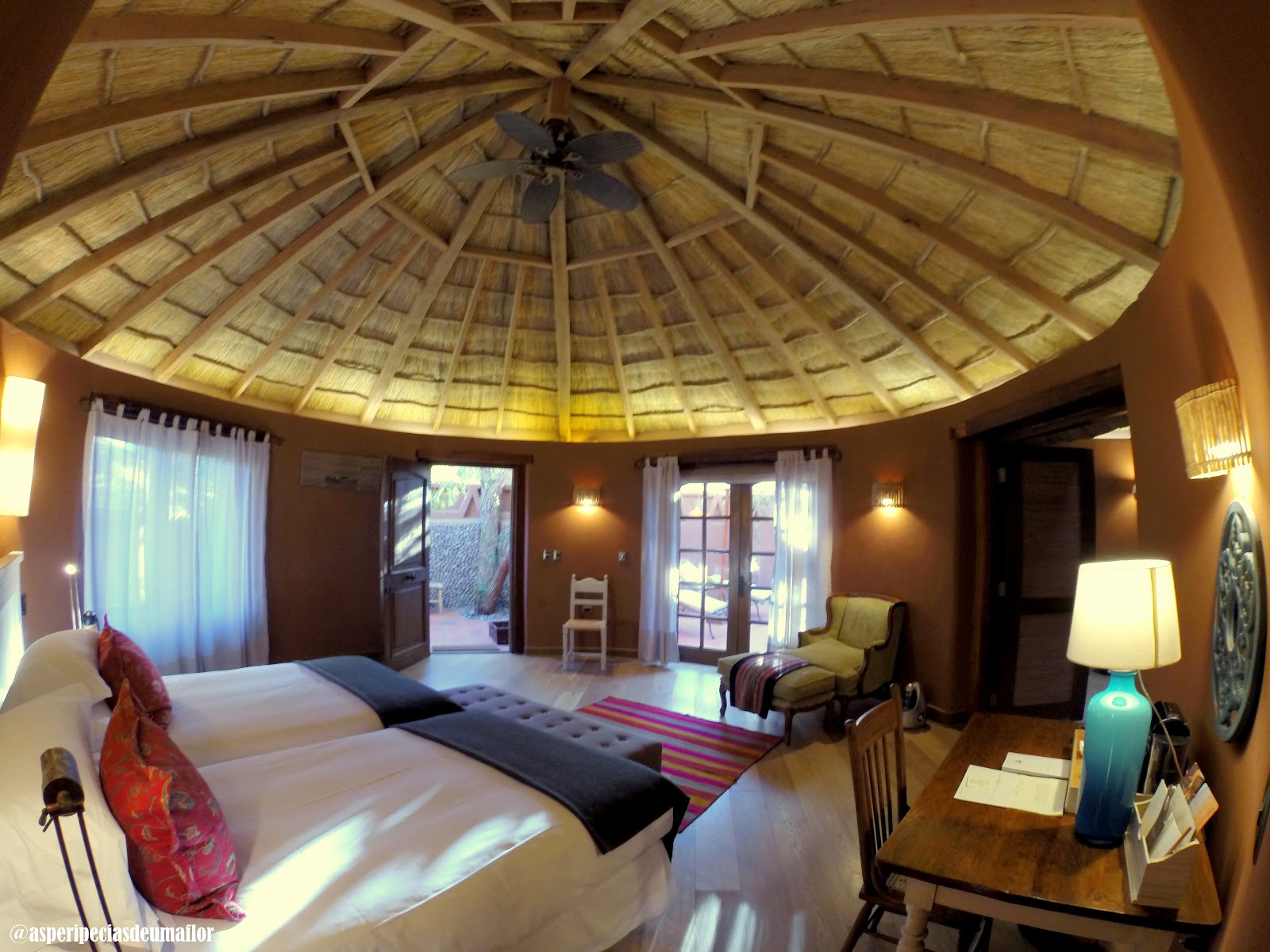 Fiquei hospedada nesta suíte e me senti extremamente confortável, não só pelo tamanho do quarto, mas também pela sua proposta de ter bem segregados e proporcionados todos os espaços. A cama literalmente nos abraça, o chuveiro na medida, as toalhas grossas e macias, os chinelos pra lá de aconchegantes e a banheira, a melhor forma de descansar depois de um dia cheio de passeios pelo deserto. Não dá vontade de sair do quarto até o horário da próxima refeição ou do próximo passeio.