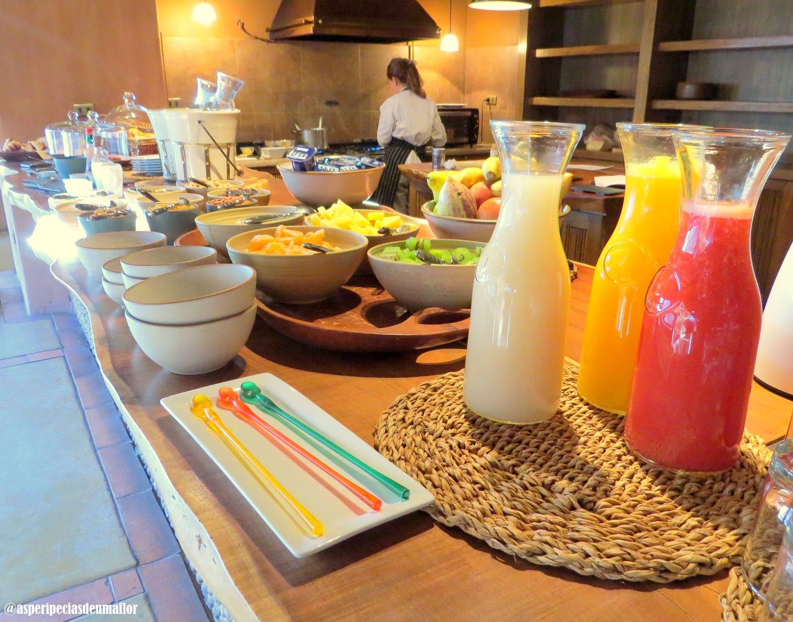 Com uma requintada e saborosa opção de buffet contendo variados tipos de frutas, frios, pães, sucos e cereais, o café da manhã ainda conta com um cardápio de ovos, omeletes, panquecas, waffles e demais itens do gênero que podem ser solicitados ao garçom assim que sentamos à mesa.