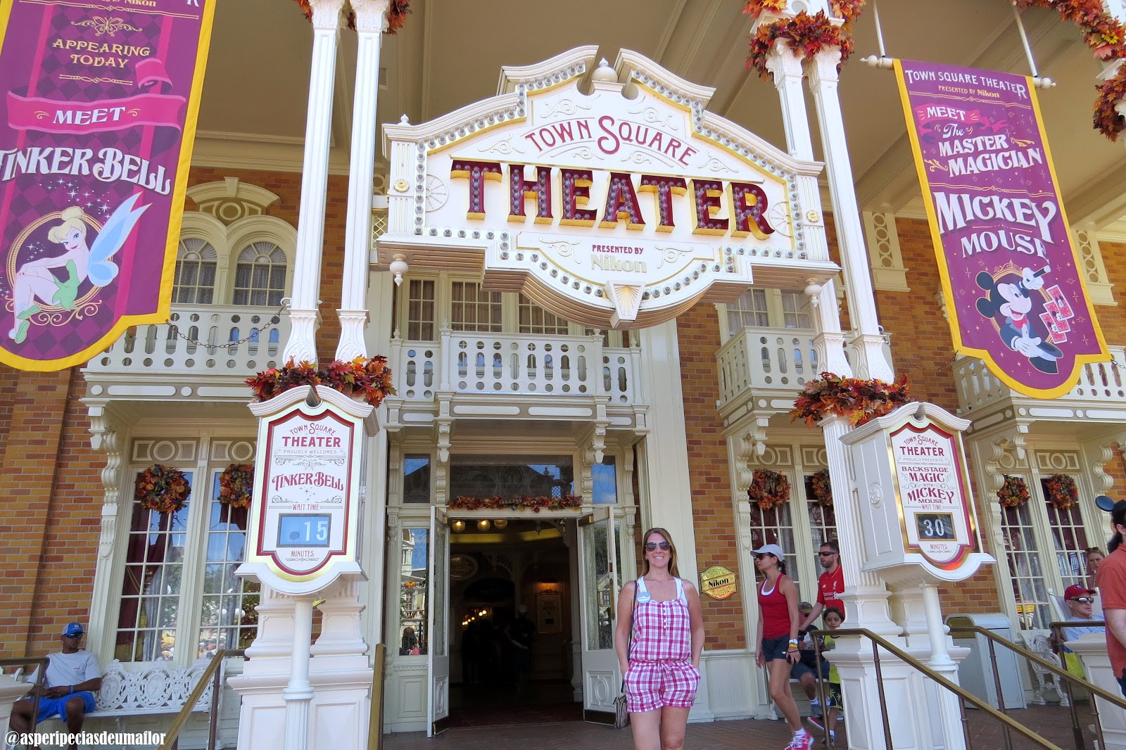 Para que você possa ter a mesma experiência, lá na mesma entrada, vá ao Town Square Theater, localizado ao lado oposto do Guest Relations , e entre na fila da atração “Meet Mickey Mouse”.