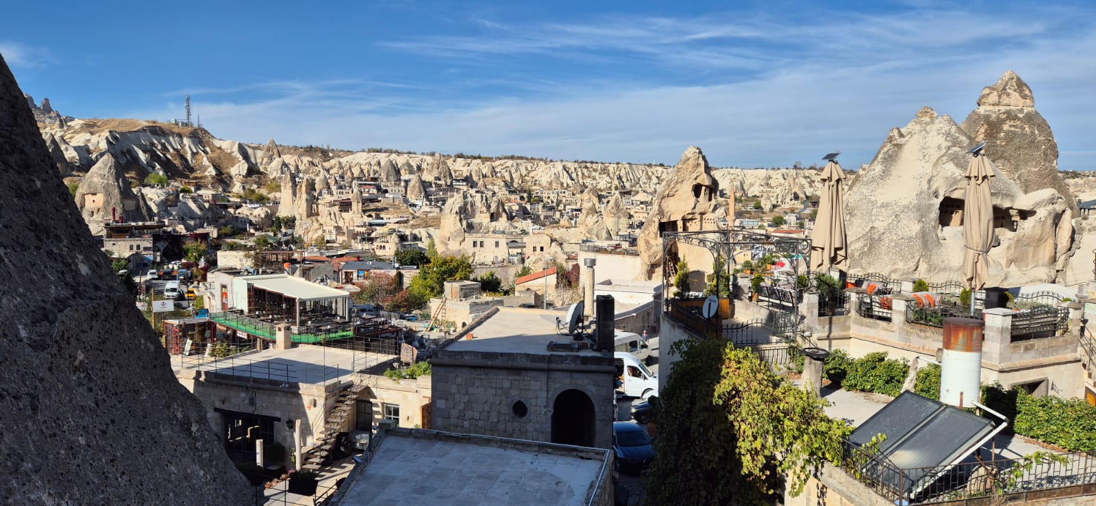 Saímos bem cedo — transfer às 5h30 e voo às 7h30. Às 9h já estávamos na Capadócia em tempo de pegar o café da manhã gentilmente cedido pelo hotel! Ficamos hospedados em um cave hotel, o Artemis Cave ou seja, hotel encrustado nas pedras e montanhas características da Capadócia e construído todo com as pedras. É uma experiência a parte se hospedar nesses hotéis.