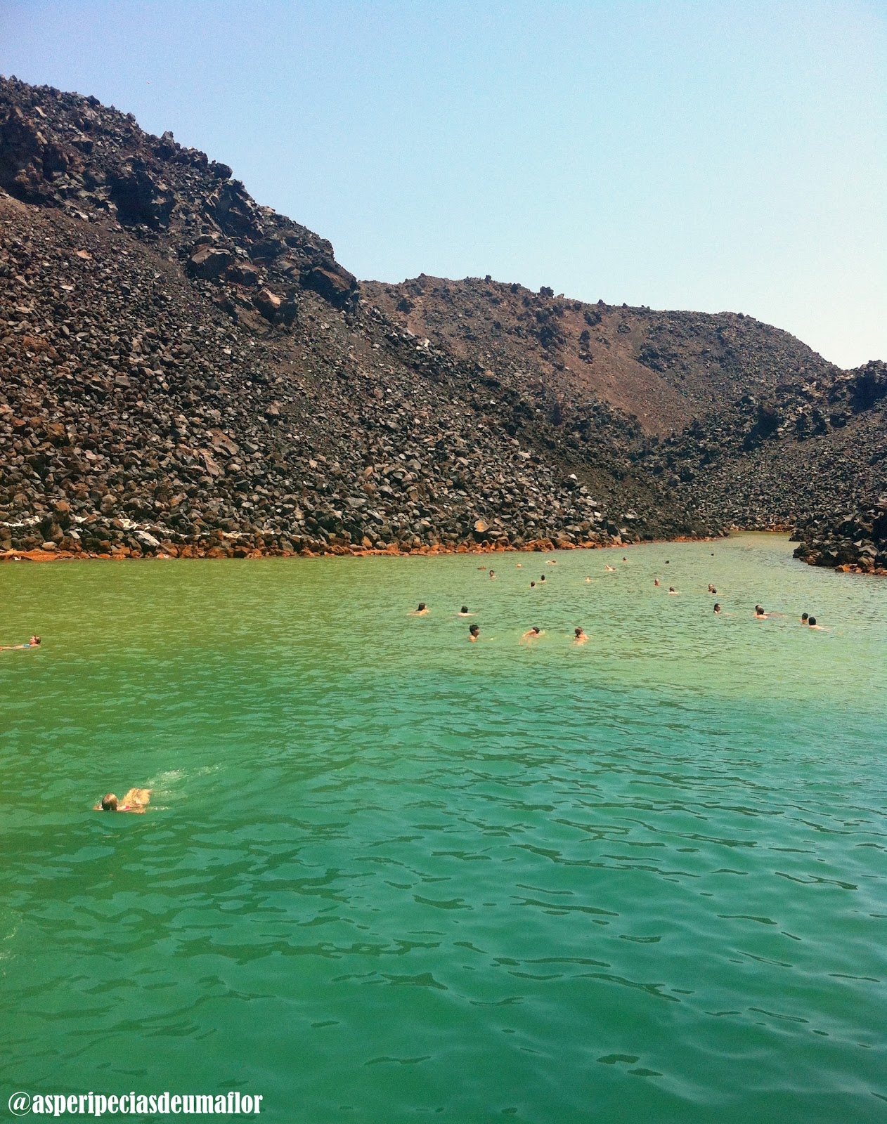Para desfrutar de toda esta quentura é necessário nadar além de onde o barco atracar. Quando mais perto da faixa estreita e próximo ao vulcão for, mais quente será a temperatura da água. Como fui no verão, longe da faixa estreita, a temperatura é morna, mas dá para dar aquela refrescada depois da subida até a cratera do vulcão.