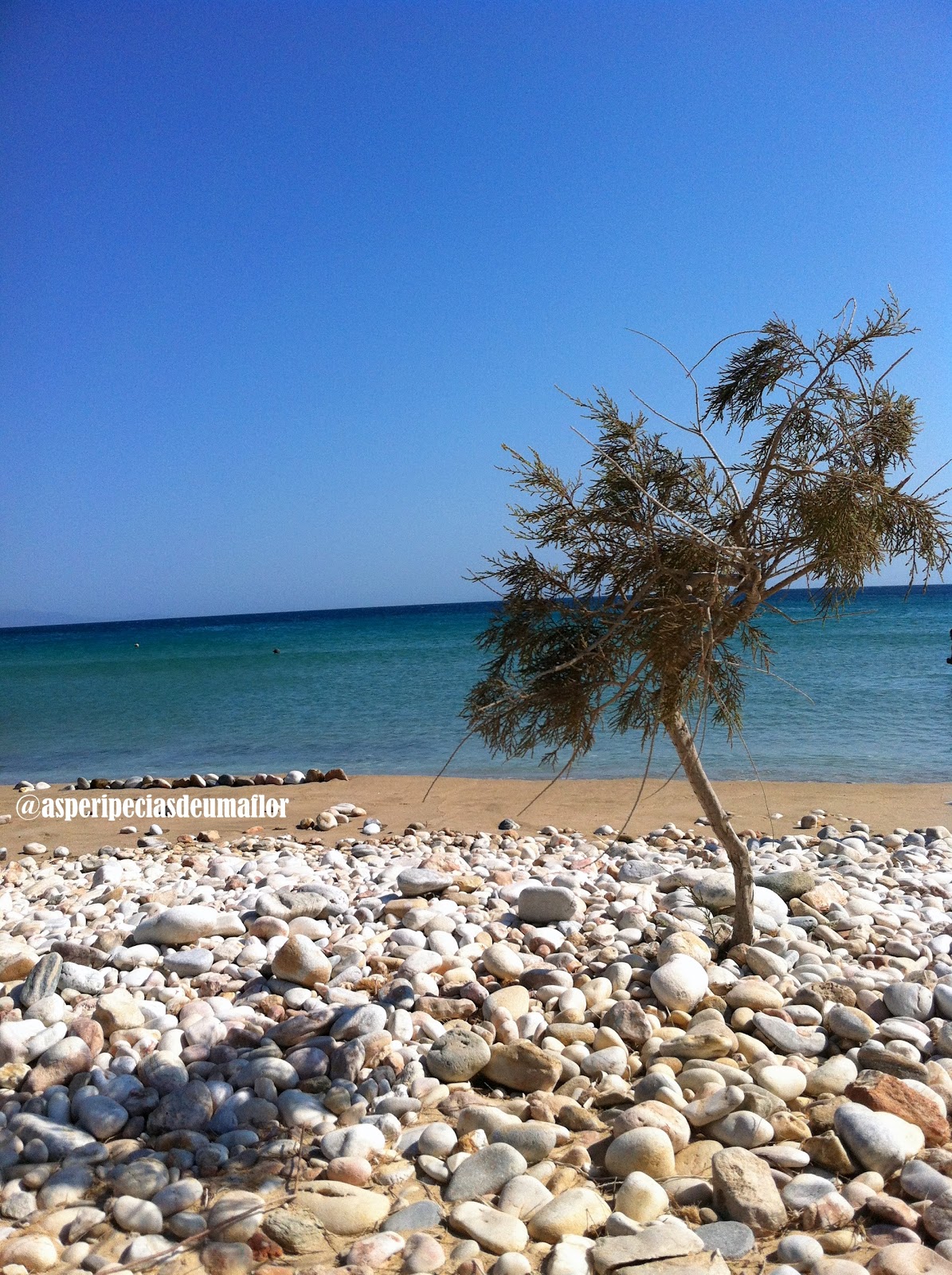 O que mais me chamou atenção por lá foram o contraste das pedras com o mar e a aglomeração das pessoas em uma pequeníssima faixa de areia. A infraestrutura de praia muitas vezes fica atrás das pedras. É estranho uma praia assim, mas ao mesmo tempo, Kolimbithres tem seu charme.