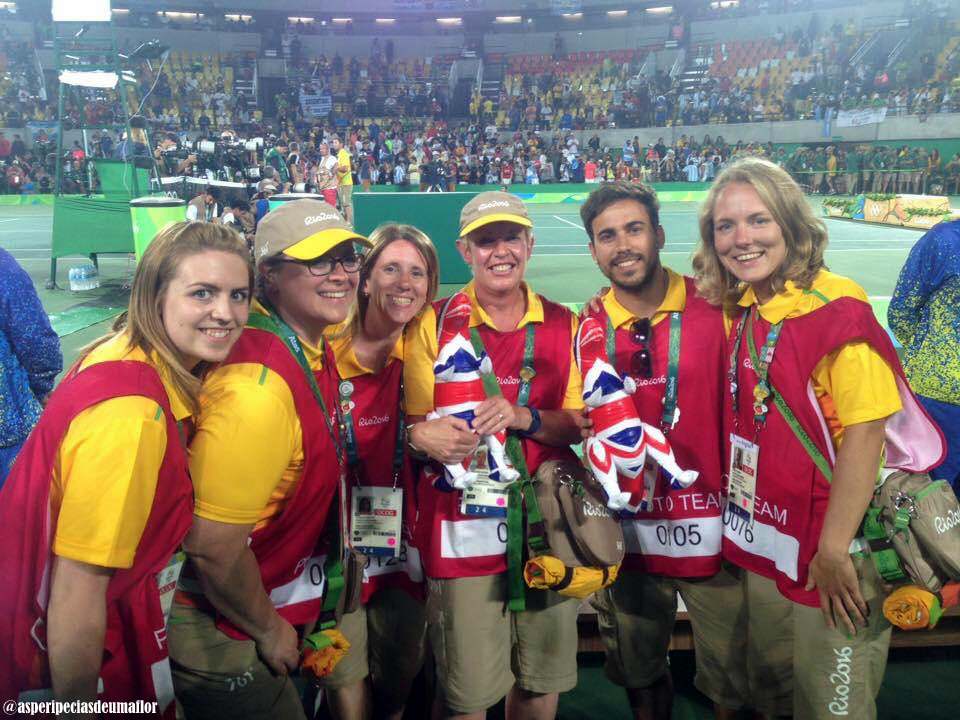 Claro que haviam alguns poucos cariocas no time e um pingado de outros brasileiros, como eu, que era a única paulista. A grande massa mesmo era formada por europeus, na grande maioria britânicos, que acumulam a função de voluntário desde Olimpíadas anteriores. O que muito dizia nos bastidores é que a falta de mais brasileiro deve-se a três grandes fatores: (a) desinteresse de fazer algo que não é remunerado; (b) momento de crise e insegurança quanto a garantia de emprego pela fase que o Brasil atravessa; (c) a ausência do domínio do inglês, que é fundamental, ainda mais quando falamos de um esporte tão elitizado como o tênis.