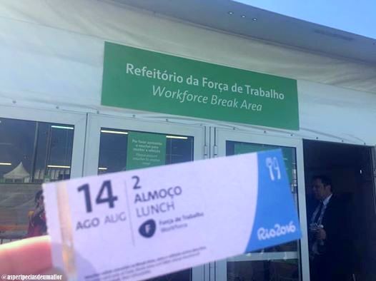 (b) o tratamento dado aos voluntários não foi dos mais incentivadores durante os jogos já que recebemos a escala, a função e o que tínhamos a fazer era trabalhar, trabalhar, trabalhar, meu filho, sem muitos agradecimentos, treinamento adequado ou palavras de empoderamento, que estava acostumada a dar quando era executiva. Com poucas cadeiras de descanso e pouquíssimo tempo para um break, que também era horário das refeições, aqueles 40 minutos era mais um respiro que um descanso;