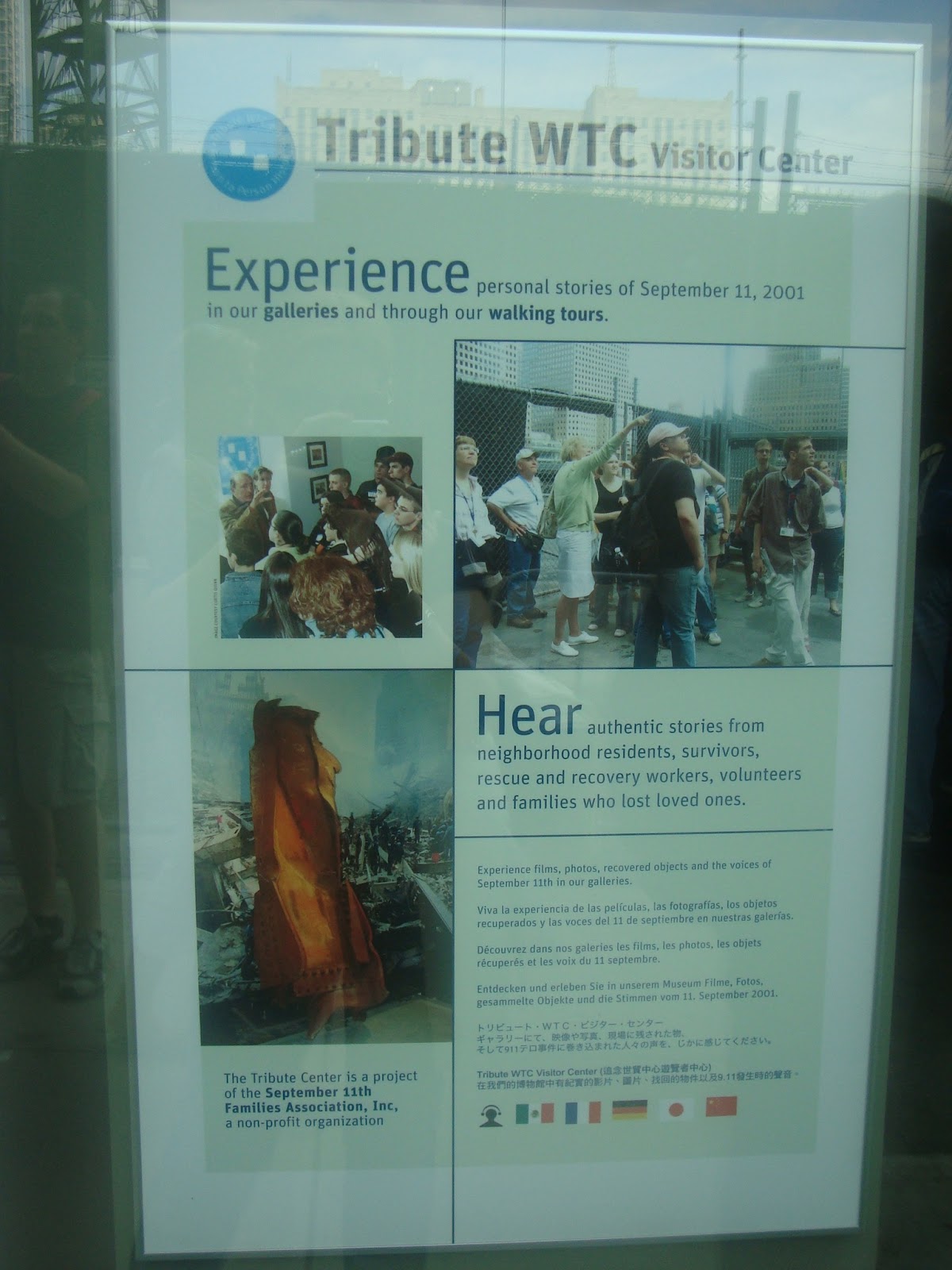 Bom, em uma das minhas andanças por Nova Iorque, tomei coragem e fui até a “World Trade Center Gallery” que na verdade é uma espécie de “museu de memórias” destinado às vítimas da tragédia de 11 de setembro de 2001.