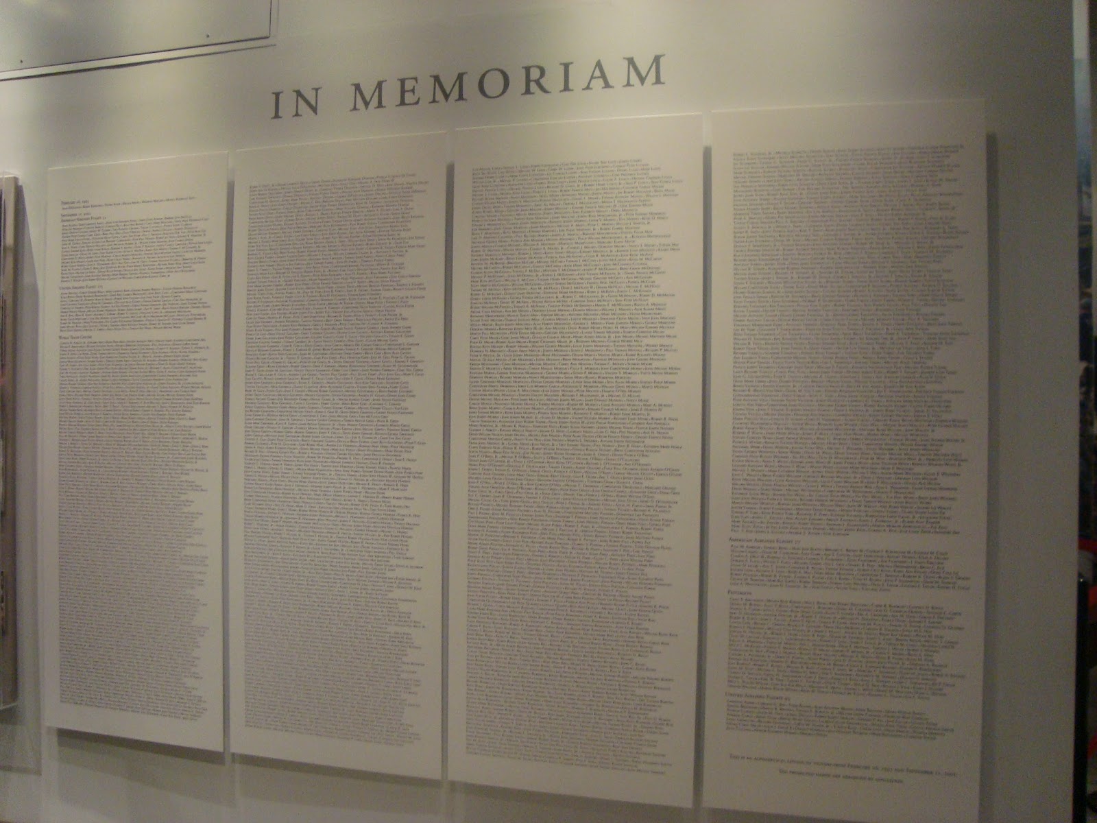 Caminhando um pouco mais, como você pode ver na foto, tem uma relação de todas as vítimas da tragédia e é ali que você relembra a quantidade de pessoas que foram mortas brutalmente naquele dia. Para você ter uma idéia, meu querido leitor, os lenços de papel ficam nos bancos justamente porque é um dos lugares mais emocionantes da visita. Muitos se emocionam e choram de lembrar o que aquelas pessoas passaram. É muito forte!